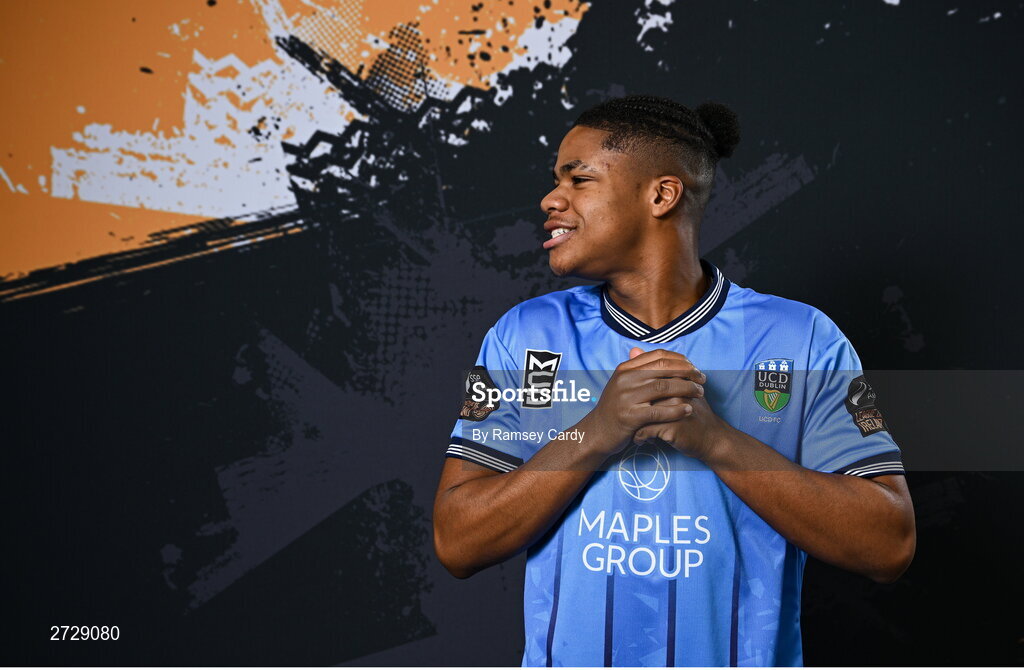 9 February 2024; Matthew Alonge poses for a portrait during a UCD FC squad portraits session at UCD Bowl in Dublin. Photo by Ramsey Cardy/Sportsfile