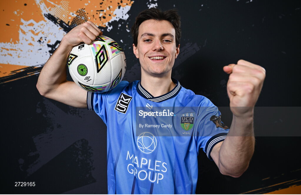 9 February 2024; Danú Kinsella-Bishop poses for a portrait during a UCD FC squad portraits session at UCD Bowl in Dublin. Photo by Ramsey Cardy/Sportsfile