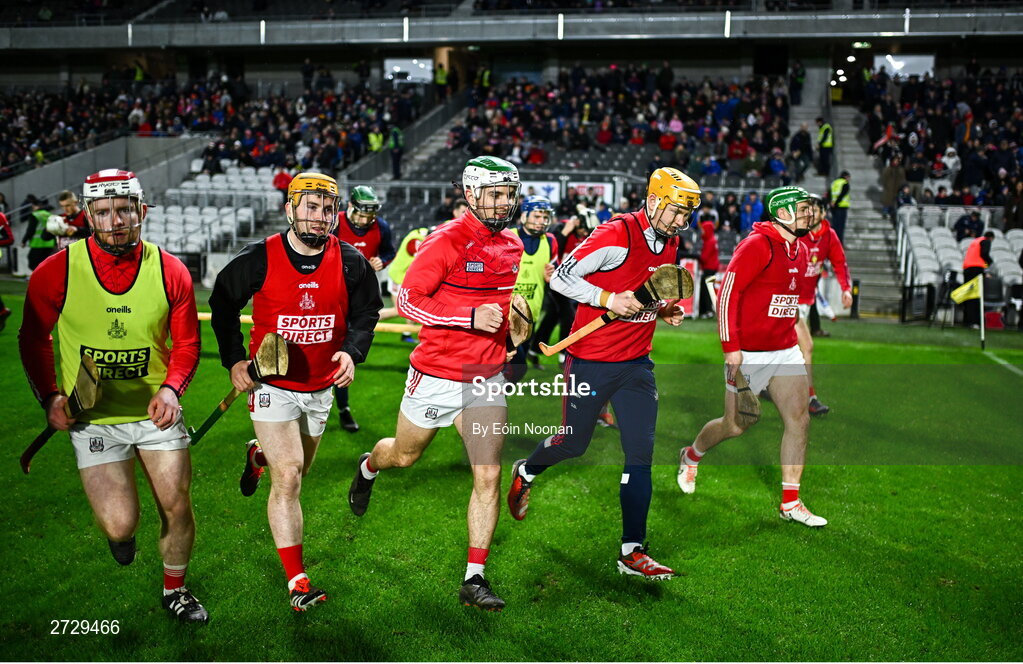 10 February 2024; Cork players break away after the team picture before the Allianz Hurling League Division 1 Group A match between Cork and Kilkenny at SuperValu Páirc Ui Chaoimh in Cork. Photo by Eóin Noonan/Sportsfile