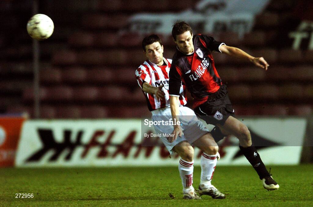 9 November 2007; Robbie Martin, Longford Town, in action against Eddie McCallion, Derry City. eircom League of Ireland Premier Division, Longford Town v Derry City, Flancare Park, Longford. Picture credit; David Maher / SPORTSFILE
