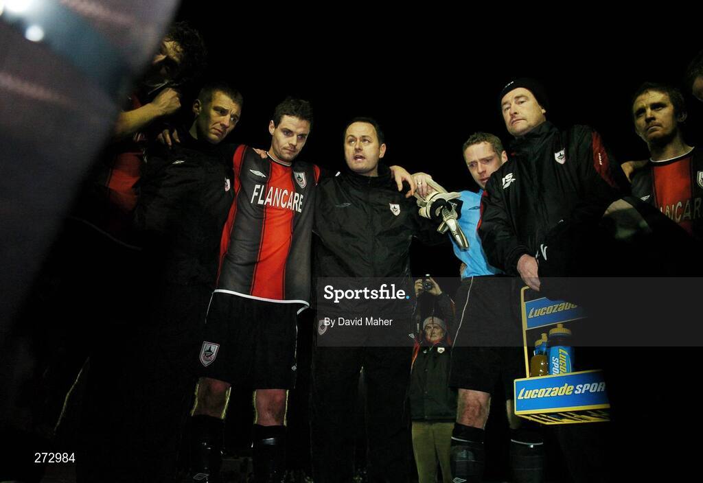 9 November 2007; Longford Town manager Alan Mathews, centre, gathers his players and staff in a huddle at the end of the game. eircom League of Ireland Premier Division, Longford Town v Derry City, Flancare Park, Longford. Picture credit; David Maher / SPORTSFILE