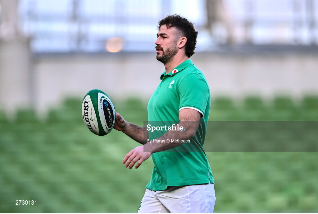 11 February 2024; Caelan Doris of Ireland before the Guinness Six Nations Rugby Championship match between Ireland and Italy at the Aviva Stadium in Dublin. Photo by Piaras Ó Mídheach/Sportsfile