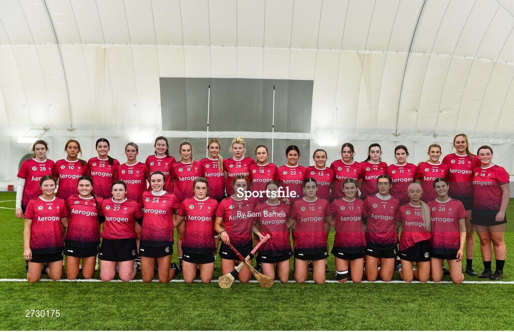 11 February 2024; The University of Galway team before the Electric Ireland Purcell Cup final match between University of Galway and SETU Carlow at University of Galway Connacht GAA AirDome in Bekan, Mayo. Photo by Sam Barnes/Sportsfile