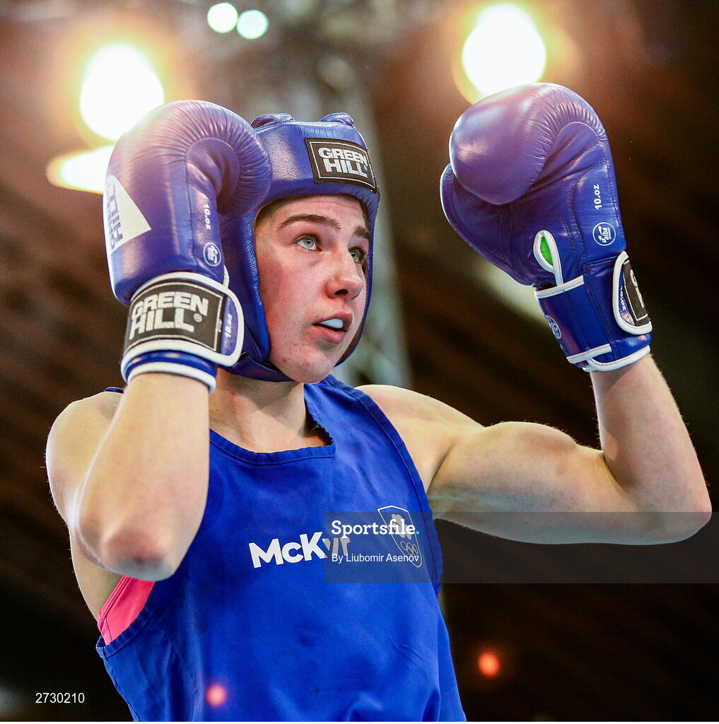 11 February 2024; Aoife O'Rourke of Ireland in action against Baison Manikon of Thailand in their middleweight 75kg final bout during the 75th International Boxing Tournament Strandja in Sofia, Bulgaria. Photo by Liubomir Asenov /Sportsfile