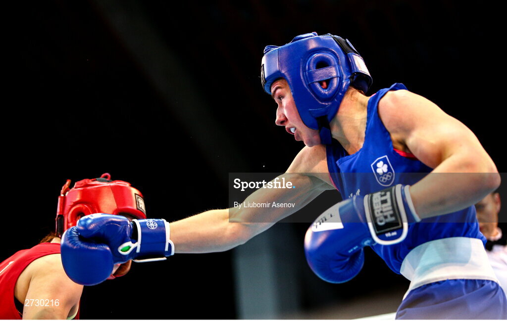 11 February 2024; Aoife O'Rourke of Ireland, right, in action against Baison Manikon of Thailand in their middleweight 75kg final bout during the 75th International Boxing Tournament Strandja in Sofia, Bulgaria. Photo by Liubomir Asenov /Sportsfile