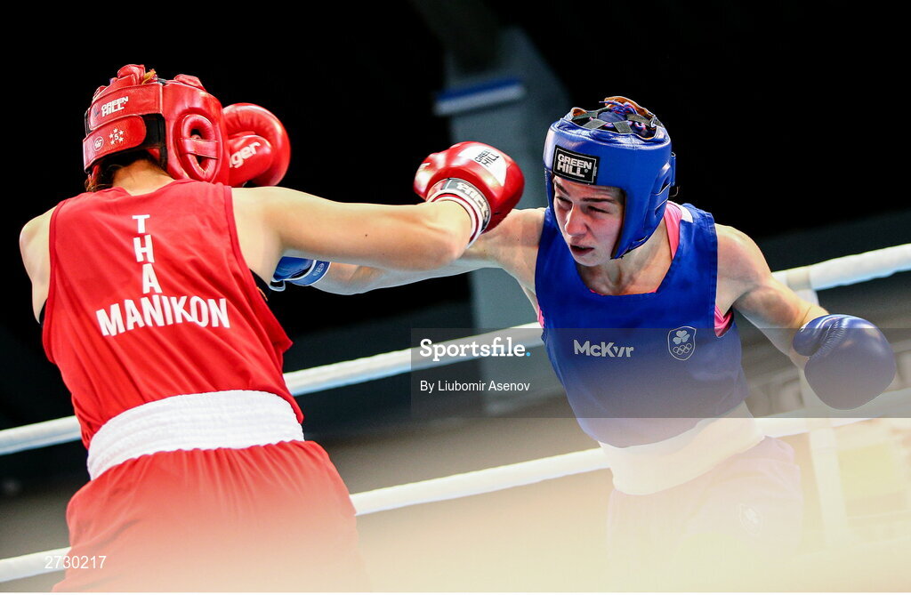 11 February 2024; Aoife O'Rourke of Ireland, right, in action against Baison Manikon of Thailand in their middleweight 75kg final bout during the 75th International Boxing Tournament Strandja in Sofia, Bulgaria. Photo by Liubomir Asenov /Sportsfile