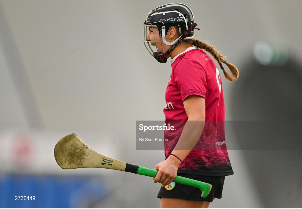 11 February 2024; Tiffanie Fitzgerald of University of Galway celebrates after her side's victory in the Electric Ireland Purcell Cup final match between University of Galway and SETU Carlow at University of Galway Connacht GAA AirDome in Bekan, Mayo. Photo by Sam Barnes/Sportsfile