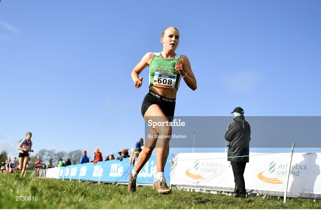 11 February 2024; Eve Dowling of Newbridge AC, Kildare, competes in the Girls U15 2500m during the 123.ie National Intermediate, Masters & Juvenile B Cross Country Championships at DKiT Campus in Dundalk, Louth. Photo by Stephen Marken/Sportsfile