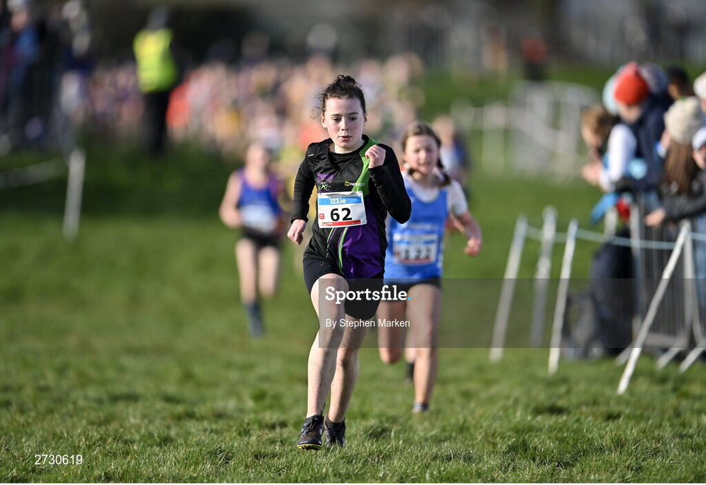 11 February 2024; Katie Dardis of Navan AC, Meath, on her way to winning the Girls U11 1000m during the 123.ie National Intermediate, Masters & Juvenile B Cross Country Championships at DKiT Campus in Dundalk, Louth. Photo by Stephen Marken/Sportsfile
