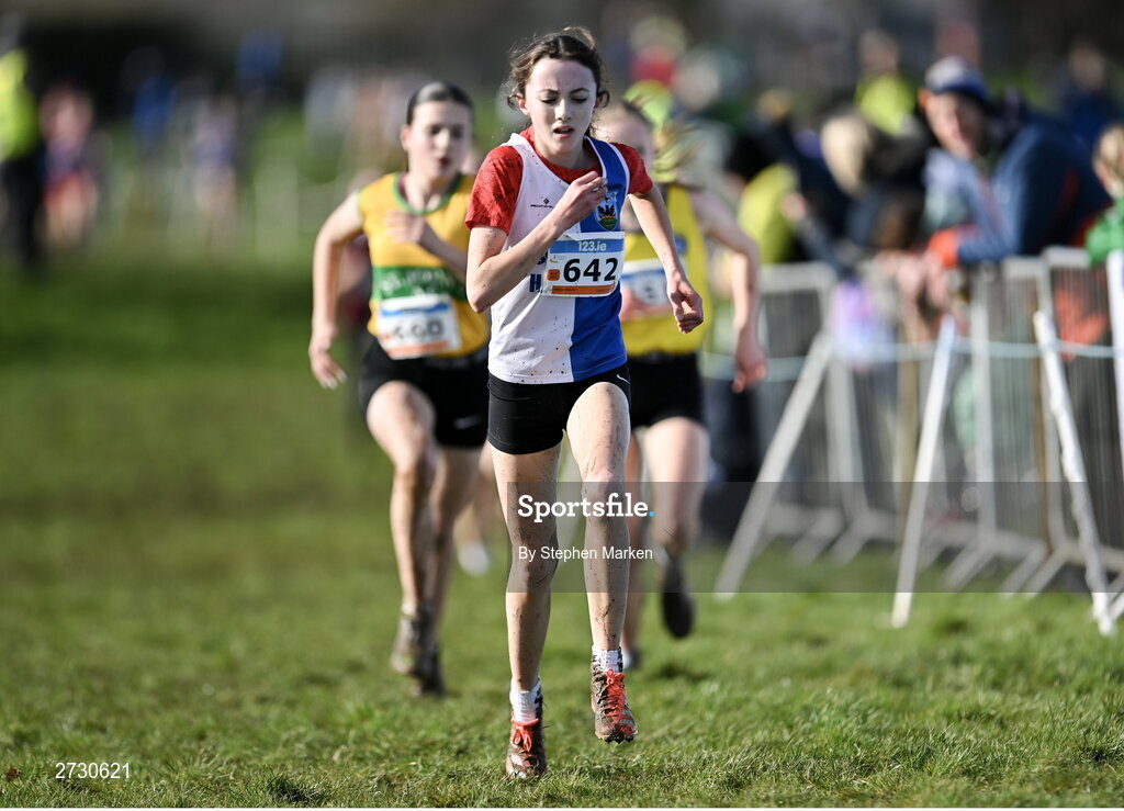 11 February 2024; Adelyn Walsh of Tullamore Harriers AC, Offaly, competes in the Girls U15 2500m during the 123.ie National Intermediate, Masters & Juvenile B Cross Country Championships at DKiT Campus in Dundalk, Louth. Photo by Stephen Marken/Sportsfile