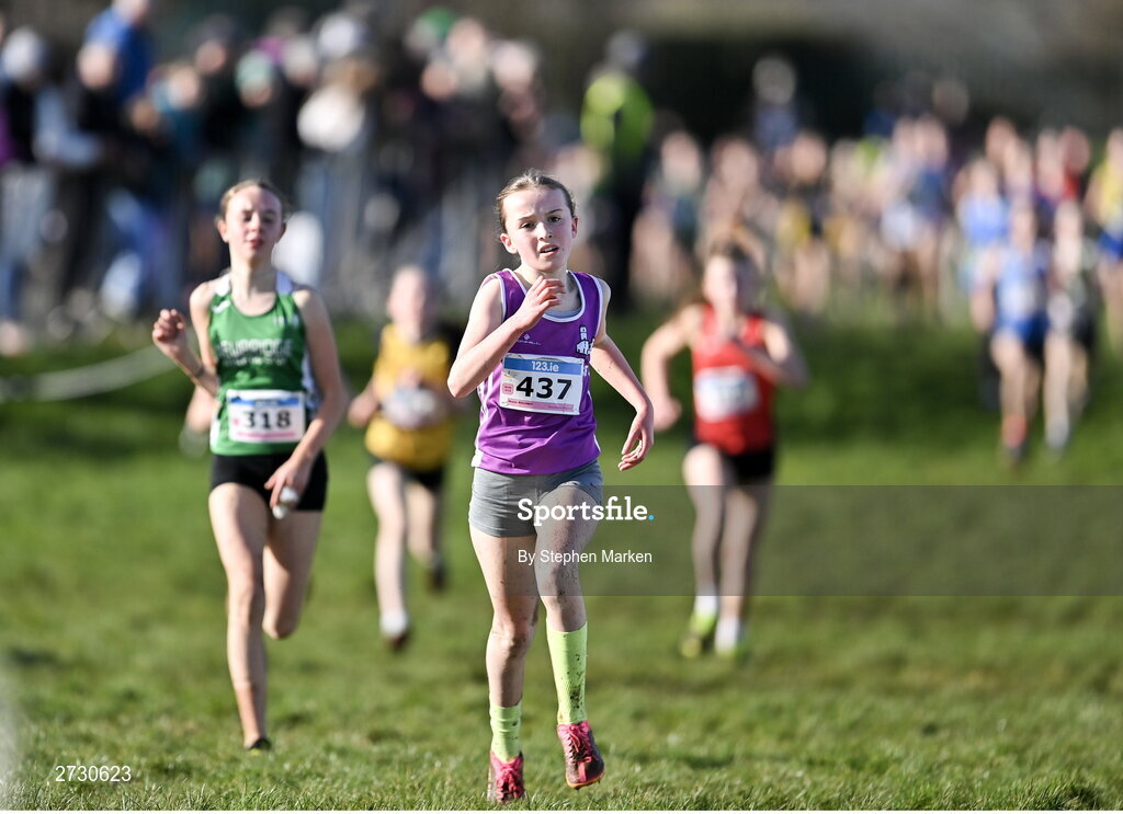 11 February 2024; Neasa Moloney of Mooreabbey Milers AC, Tipperary, on her way to winning the Girls U13 1500m during the 123.ie National Intermediate, Masters & Juvenile B Cross Country Championships at DKiT Campus in Dundalk, Louth. Photo by Stephen Marken/Sportsfile