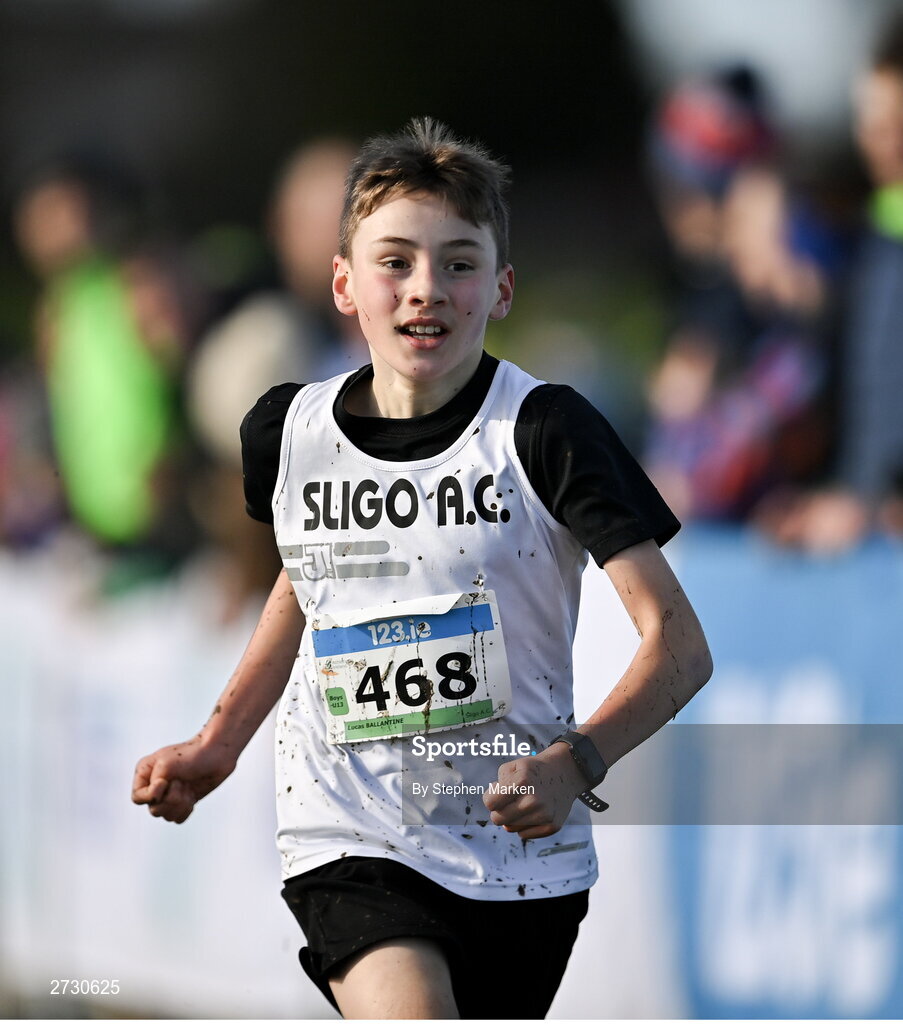 11 February 2024; Lucas Ballantine of Sligo AC, on his way to winning the Boys U13 1500m during the 123.ie National Intermediate, Masters & Juvenile B Cross Country Championships at DKiT Campus in Dundalk, Louth. Photo by Stephen Marken/Sportsfile