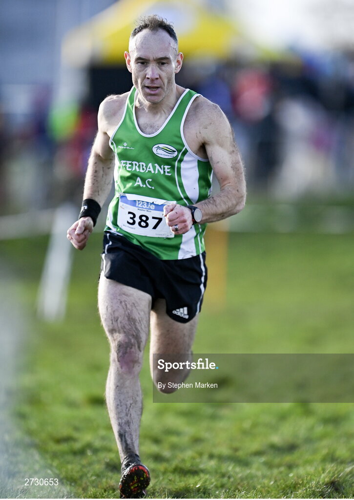 11 February 2024; Mick Fogarty of Ferbane AC, Offaly, competes in the masters men's 7000m during the 123.ie National Intermediate, Masters & Juvenile B Cross Country Championships at DKiT Campus in Dundalk, Louth. Photo by Stephen Marken/Sportsfile