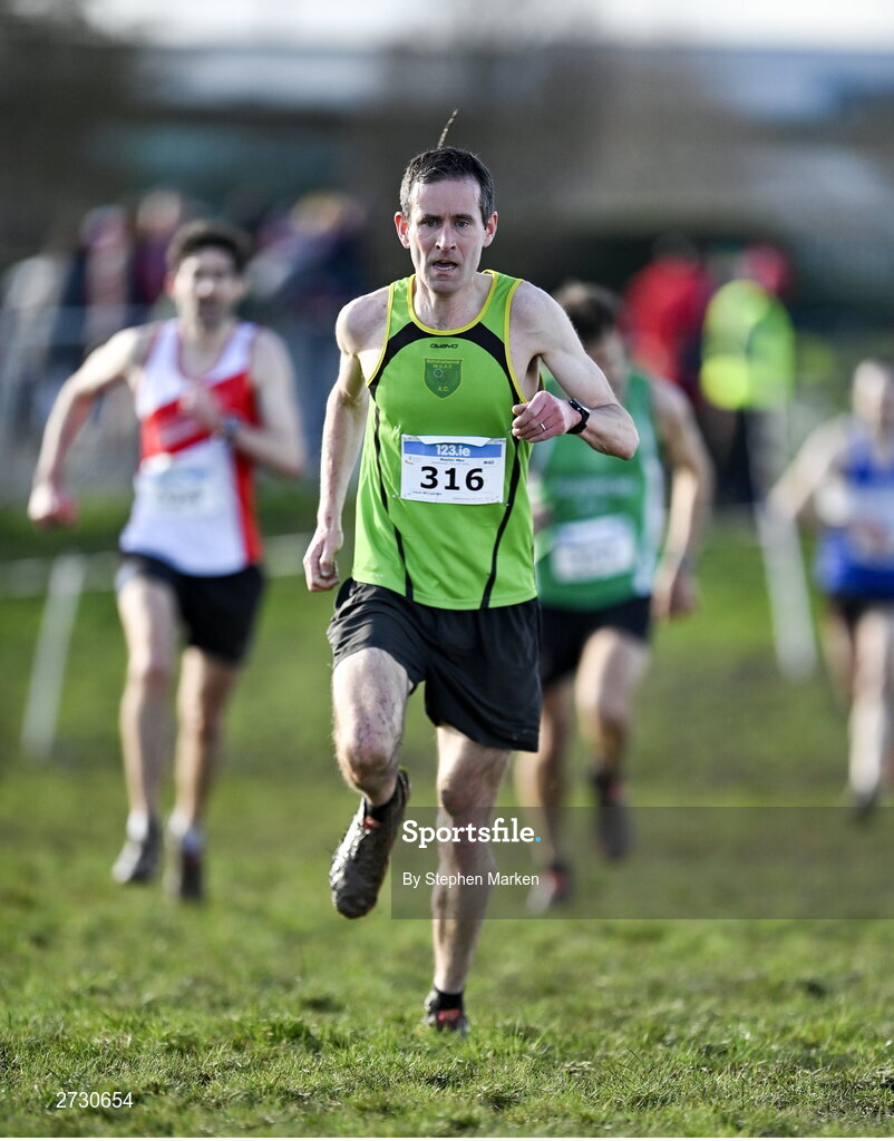 11 February 2024; Louis Mccarthy of Rathfarnham WSAF AC, Dublin, competes in the masters men's 7000m during the 123.ie National Intermediate, Masters & Juvenile B Cross Country Championships at DKiT Campus in Dundalk, Louth. Photo by Stephen Marken/Sportsfile