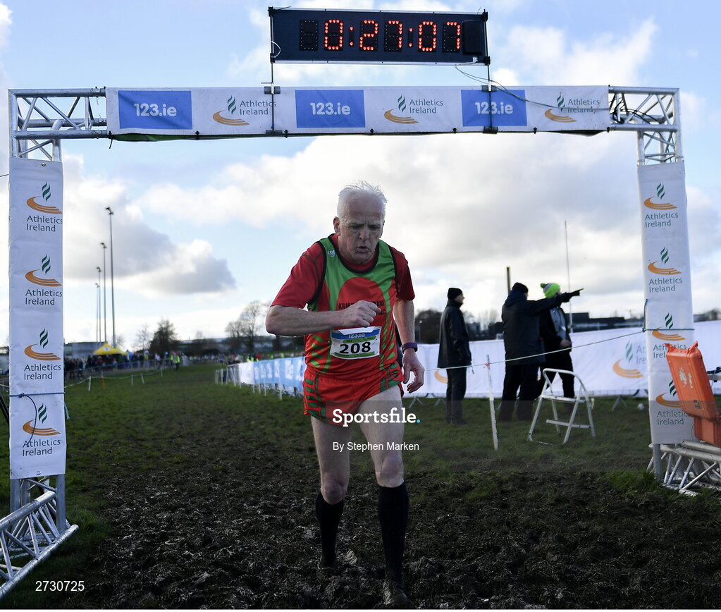 11 February 2024; James Sexton of Kilmurray/Ibrick/NClare AC, competes in the over 65 men's 4000m during the 123.ie National Intermediate, Masters & Juvenile B Cross Country Championships at DKiT Campus in Dundalk, Louth. Photo by Stephen Marken/Sportsfile