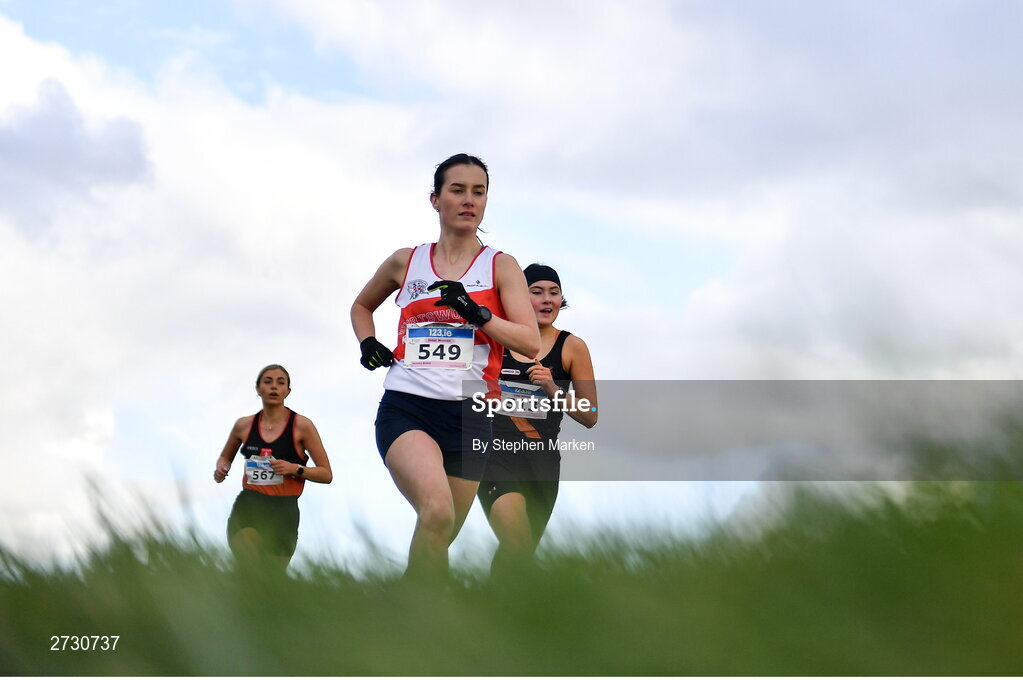 11 February 2024; Veronica Burke of Sportsworld AC, Dublin, 549, competes in the intermediate women's 5000m during the 123.ie National Intermediate, Masters & Juvenile B Cross Country Championships at DKiT Campus in Dundalk, Louth. Photo by Stephen Marken/Sportsfile
