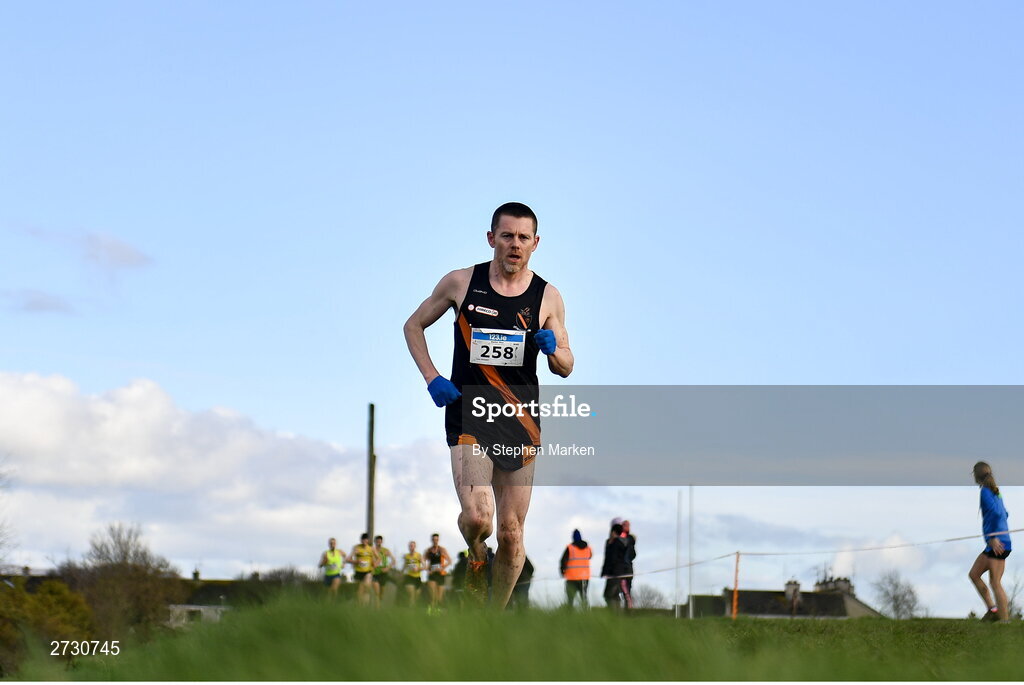 1 February 2024; Colm Rooney of Clonliffe Harriers AC, Dublin, on his way to placing second in the masters men's 7000m during the 123.ie National Intermediate, Masters & Juvenile B Cross Country Championships at DKiT Campus in Dundalk, Louth. Photo by Stephen Marken/Sportsfile