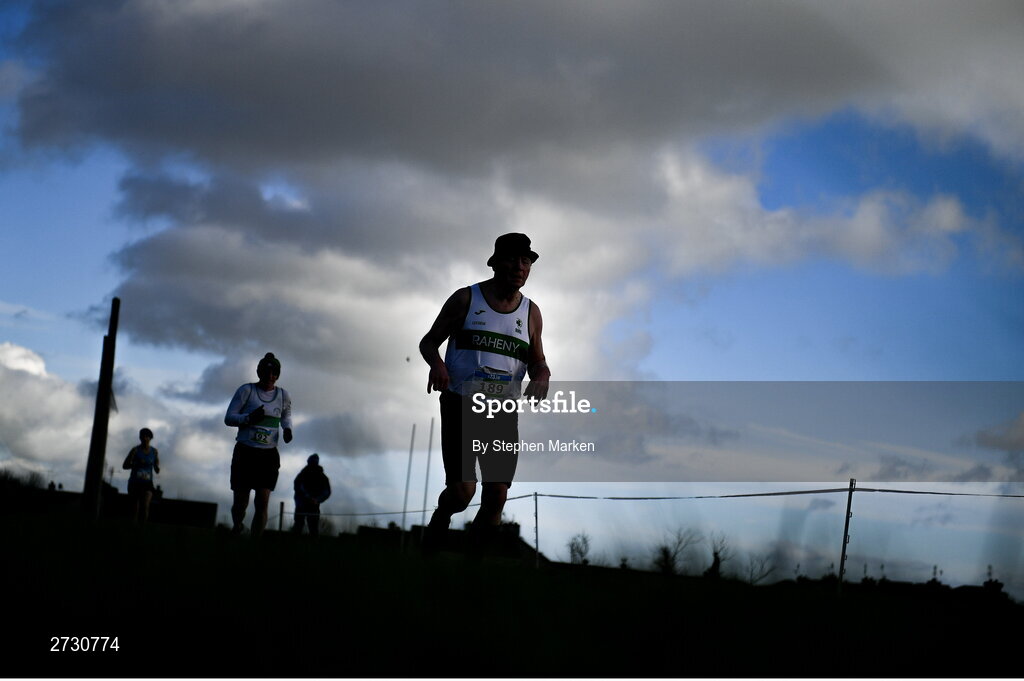11 February 2024; Mick Martin of Raheny Shamrock AC, Dublin, competes in the over 65 men's 4000m during the 123.ie National Intermediate, Masters & Juvenile B Cross Country Championships at DKiT Campus in Dundalk, Louth. Photo by Stephen Marken/Sportsfile