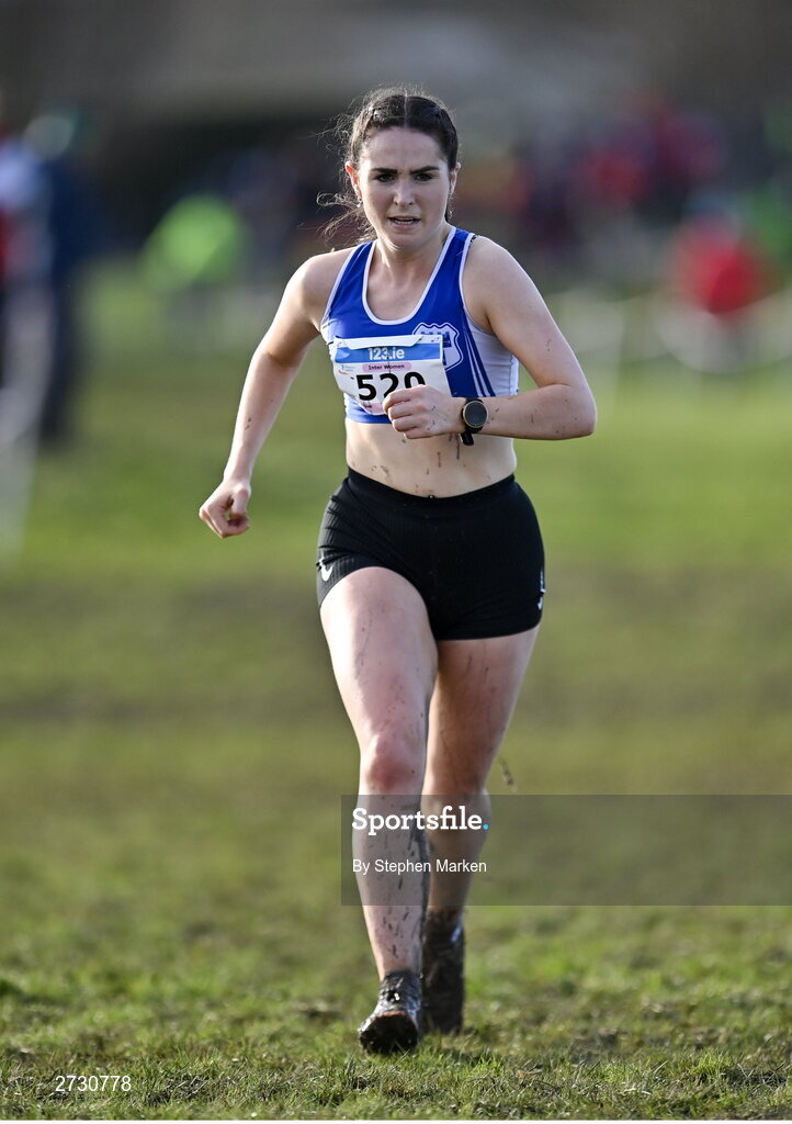 11 February 2024; Aoife Carr of Dublin City Harriers AC, competes in the intermediate women's 5000m during the 123.ie National Intermediate, Masters & Juvenile B Cross Country Championships at DKiT Campus in Dundalk, Louth. Photo by Stephen Marken/Sportsfile
