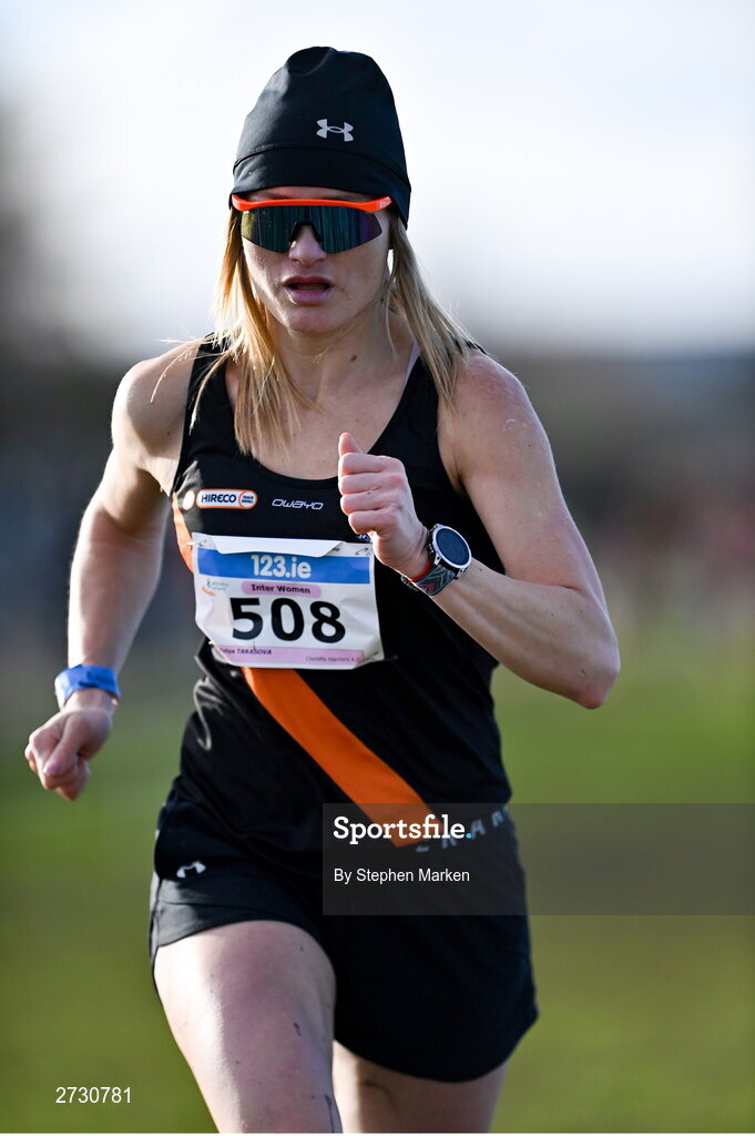 11 February 2024; Yuliya Tarasova of Clonliffe Harriers AC, Dublin, competes in the intermediate women's 5000m during the 123.ie National Intermediate, Masters & Juvenile B Cross Country Championships at DKiT Campus in Dundalk, Louth. Photo by Stephen Marken/Sportsfile
