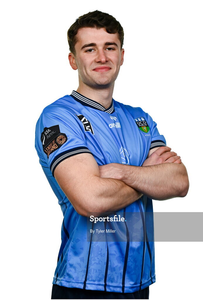 9 February 2024; Harvey O'Brien poses for a portrait during a UCD FC squad portraits session at UCD Bowl in Belfield, Dublin. Photo by Tyler Miller/Sportsfile