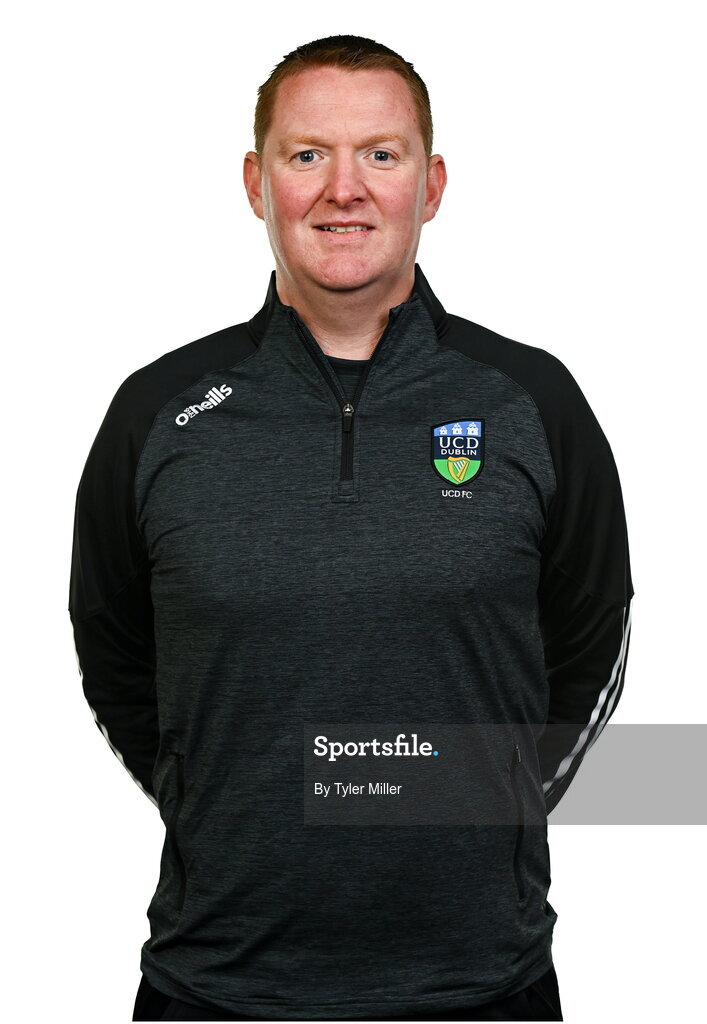 9 February 2024; Manager Willie O'Connor poses for a portrait during a UCD FC squad portraits session at UCD Bowl in Belfield, Dublin. Photo by Tyler Miller/Sportsfile