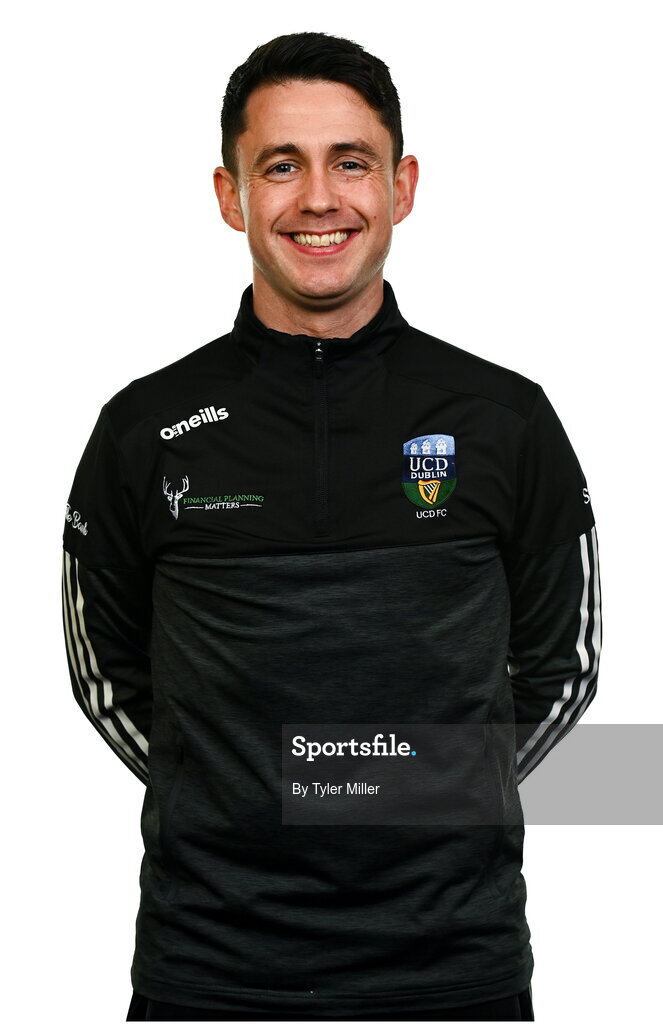 9 February 2024; Assistant manager Shane Fox poses for a portrait during a UCD FC squad portraits session at UCD Bowl in Belfield, Dublin. Photo by Tyler Miller/Sportsfile