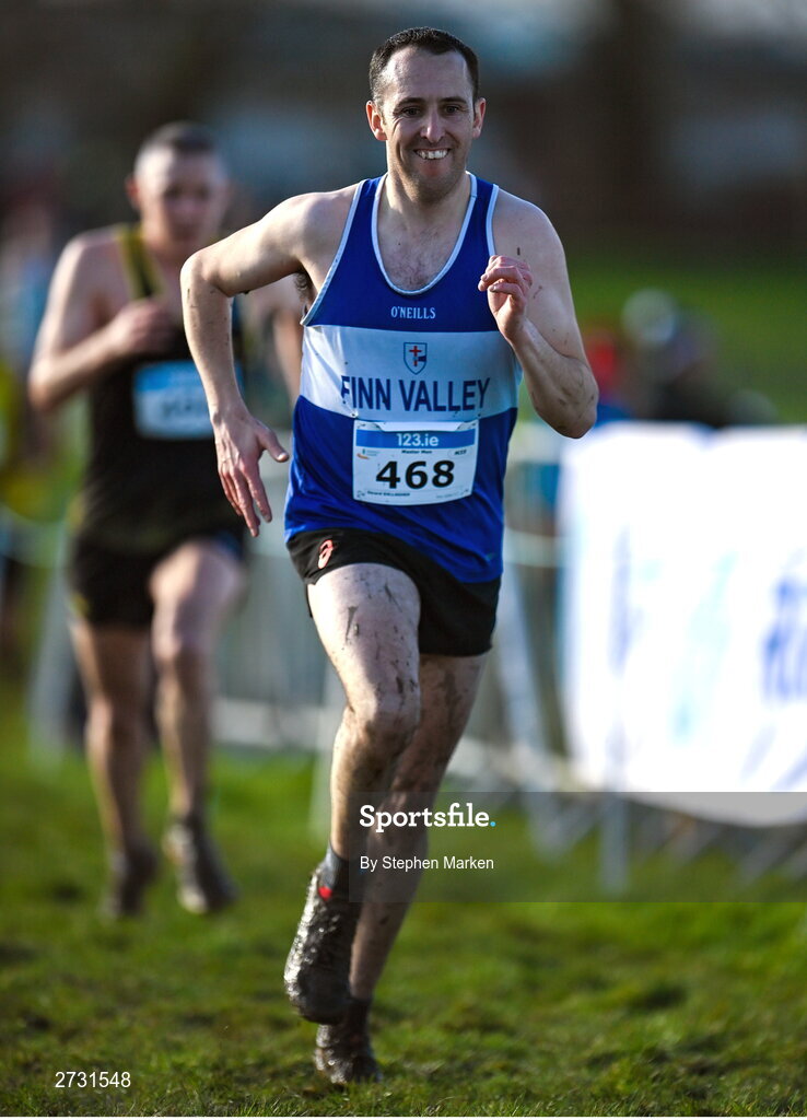 11 February 2024; Gerard Gallagher of Finn Valley AC, Donegal, competes in the masters men's 7000m during the 123.ie National Intermediate, Masters & Juvenile B Cross Country Championships at DKiT Campus in Dundalk, Louth. Photo by Stephen Marken/Sportsfile