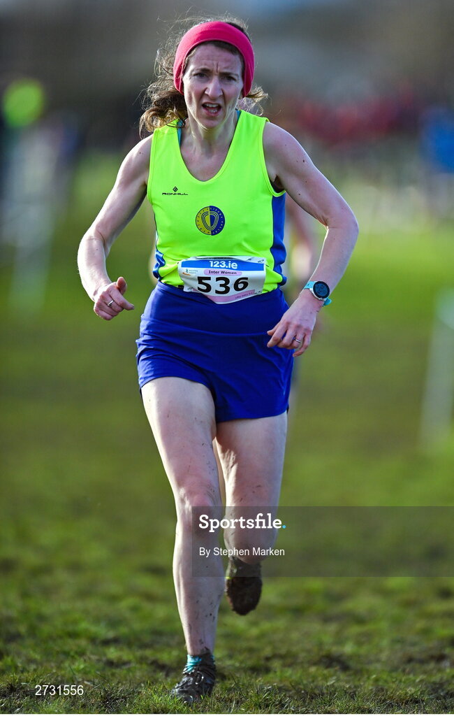 11 February 2024; Brigid Long of Liffey Valley AC, Dublin, competes in the intermediate women's 5000m during the 123.ie National Intermediate, Masters & Juvenile B Cross Country Championships at DKiT Campus in Dundalk, Louth. Photo by Stephen Marken/Sportsfile