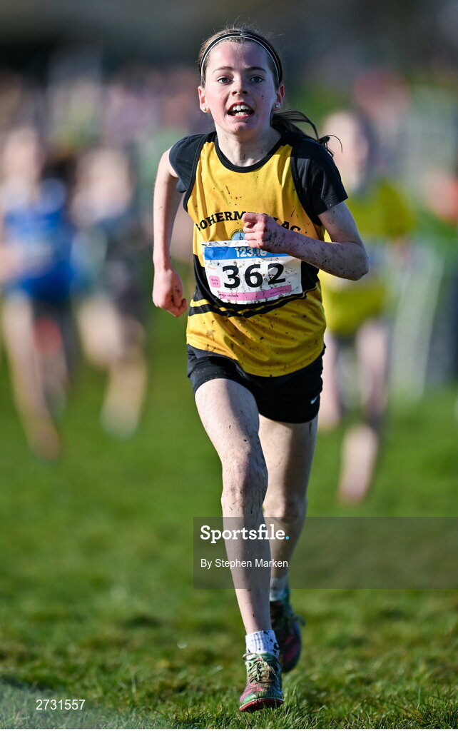 11 February 2024; Anna Brown of Bohermeen AC, Meath, competes in the Girls U13 1500m during the 123.ie National Intermediate, Masters & Juvenile B Cross Country Championships at DKiT Campus in Dundalk, Louth. Photo by Stephen Marken/Sportsfile