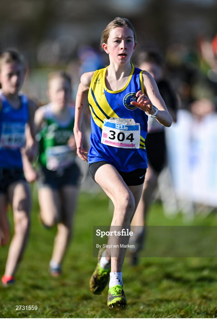 11 February 2024; Juliette Fallon of Roscommon AC, competes in the Girls U13 1500m during the 123.ie National Intermediate, Masters & Juvenile B Cross Country Championships at DKiT Campus in Dundalk, Louth. Photo by Stephen Marken/Sportsfile