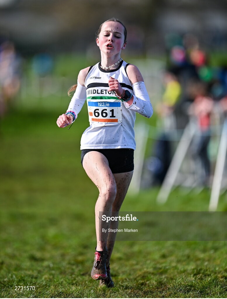 11 February 2024; Abigail Duggan of Midleton AC, Cork, competes in the Girls U15 2500m during the 123.ie National Intermediate, Masters & Juvenile B Cross Country Championships at DKiT Campus in Dundalk, Louth. Photo by Stephen Marken/Sportsfile