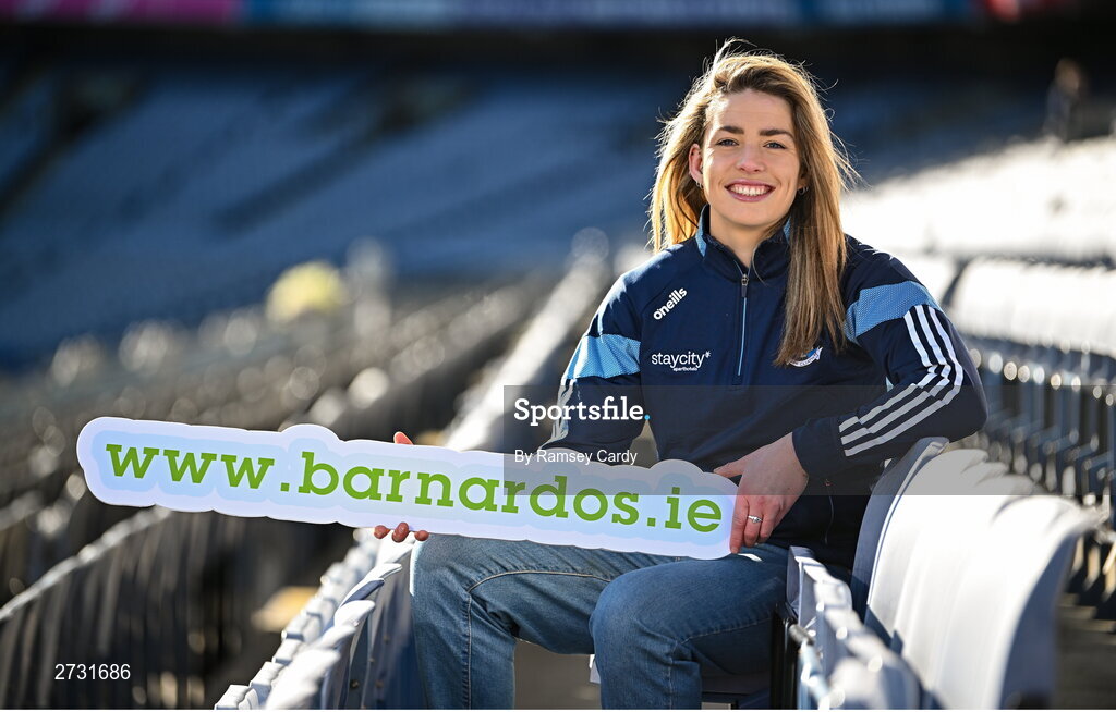 12 February 2024; In attandance at the GPA and Barnardos launch of their official charity partnership for 2024 in Croke Park, Dublin, is Dublin camogie player Aisling Maher. Photo by Ramsey Cardy/Sportsfile