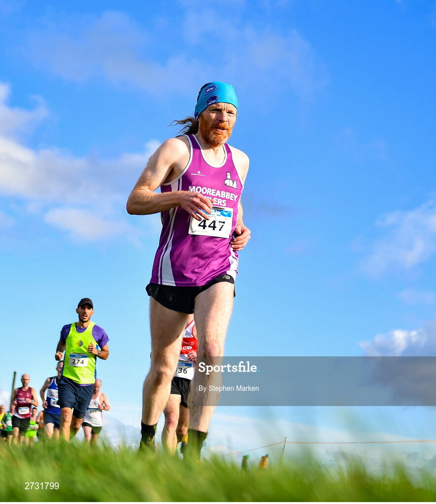 11 February 2024; Damien Holian of Mooreabbey Milers AC, Tipperary, competes in the masters men's 7000m during the 123.ie National Intermediate, Masters & Juvenile B Cross Country Championships at DKiT Campus in Dundalk, Louth. Photo by Stephen Marken/Sportsfile