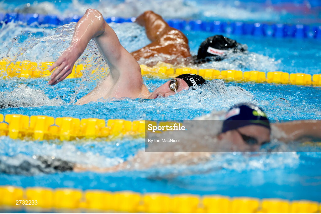 13 February 2024; Daniel Wiffen of Ireland competes in the Men's 800m freestyle heats during day three of the World Aquatics Championships 2024 at the Aspire Dome in Doha, Qatar. Photo by Ian MacNicol/Sportsfile
