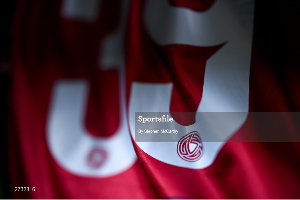 12 February 2024; A detailed view of the numbering of the Cobh Ramblers jersey during a Cobh Ramblers FC squad portraits session at St Coleman's Park in Cobh, Cork. Photo by Stephen McCarthy/Sportsfile