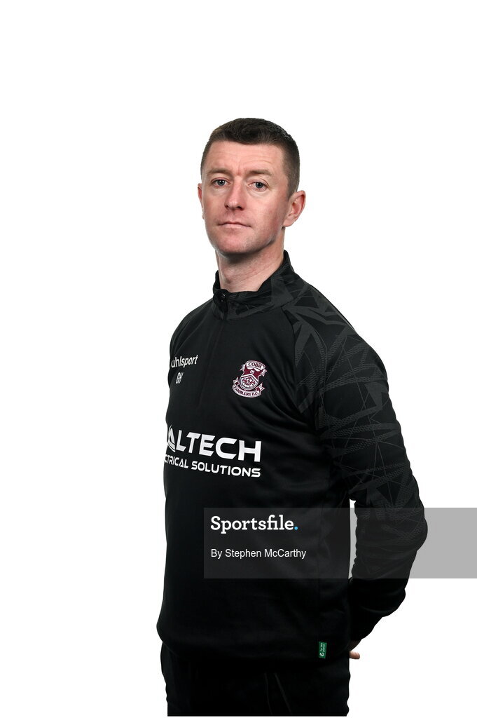 12 February 2024; Manager Gary Hunt poses for a portrait during a Cobh Ramblers FC squad portraits session at St Coleman's Park in Cobh, Cork. Photo by Stephen McCarthy/Sportsfile