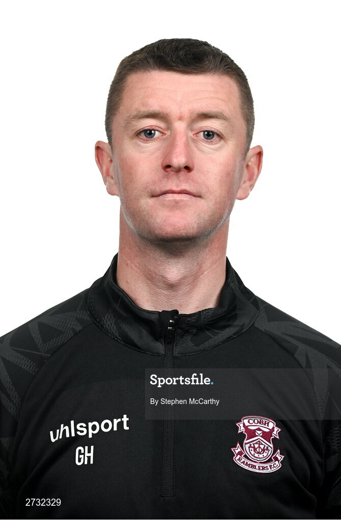 12 February 2024; Manager Gary Hunt poses for a portrait during a Cobh Ramblers FC squad portraits session at St Coleman's Park in Cobh, Cork. Photo by Stephen McCarthy/Sportsfile