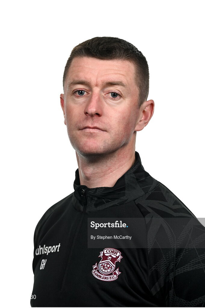 12 February 2024; Manager Gary Hunt poses for a portrait during a Cobh Ramblers FC squad portraits session at St Coleman's Park in Cobh, Cork. Photo by Stephen McCarthy/Sportsfile