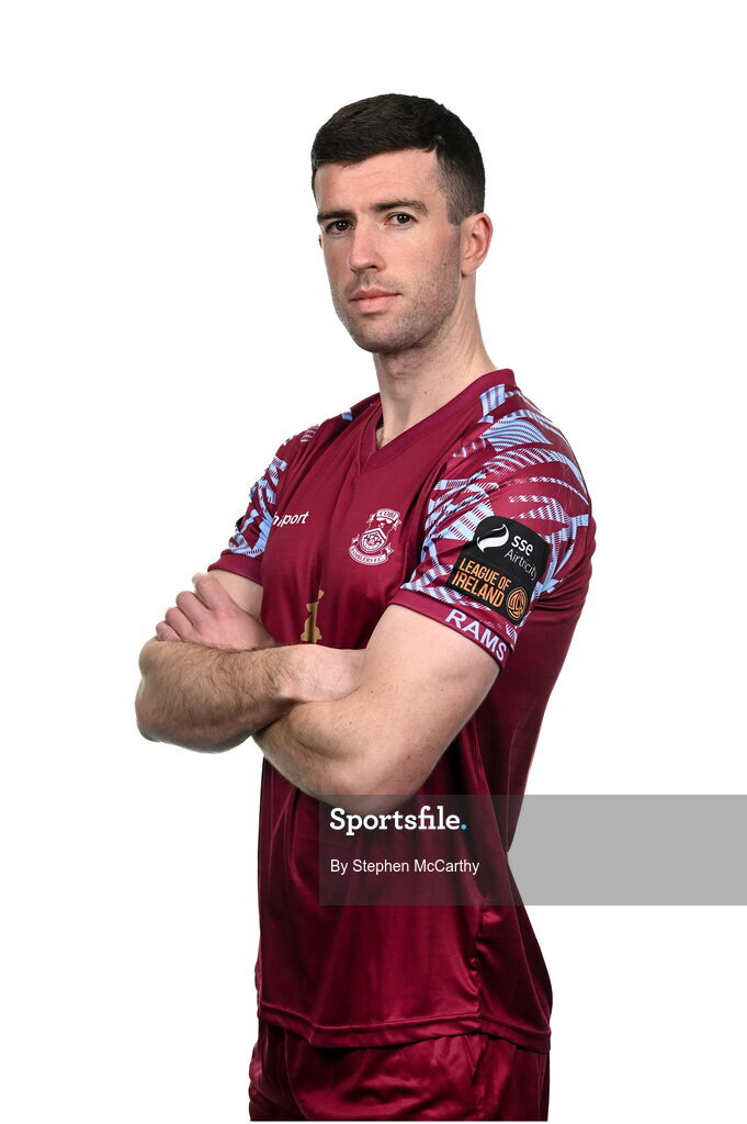 12 February 2024; Bendan Frahill poses for a portrait during a Cobh Ramblers FC squad portraits session at St Coleman's Park in Cobh, Cork. Photo by Stephen McCarthy/Sportsfile