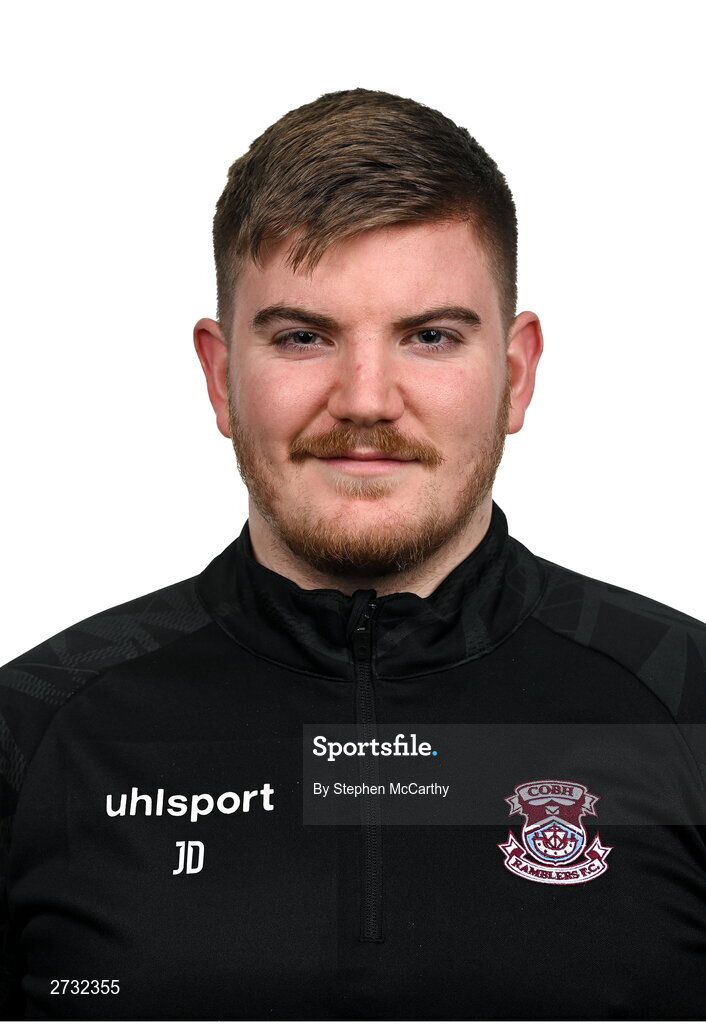 12 February 2024; Performance analyst Jacob Derham poses for a portrait during a Cobh Ramblers FC squad portraits session at St Coleman's Park in Cobh, Cork. Photo by Stephen McCarthy/Sportsfile