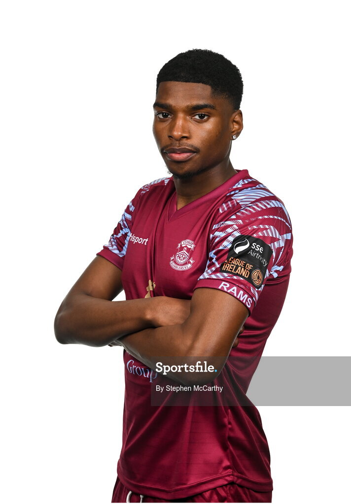 12 February 2024; David Eguaibor poses for a portrait during a Cobh Ramblers FC squad portraits session at St Coleman's Park in Cobh, Cork. Photo by Stephen McCarthy/Sportsfile