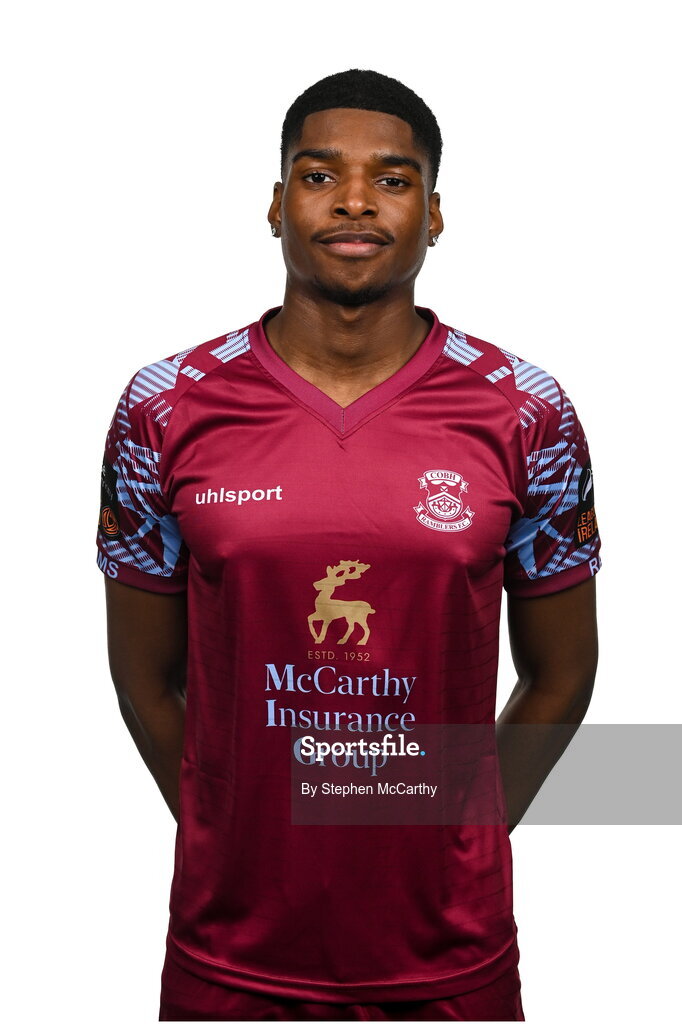 12 February 2024; David Eguaibor poses for a portrait during a Cobh Ramblers FC squad portraits session at St Coleman's Park in Cobh, Cork. Photo by Stephen McCarthy/Sportsfile