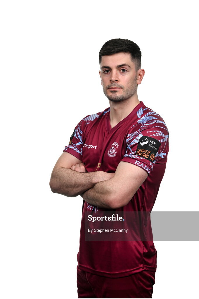 12 February 2024; Pierce Phillips poses for a portrait during a Cobh Ramblers FC squad portraits session at St Coleman's Park in Cobh, Cork. Photo by Stephen McCarthy/Sportsfile