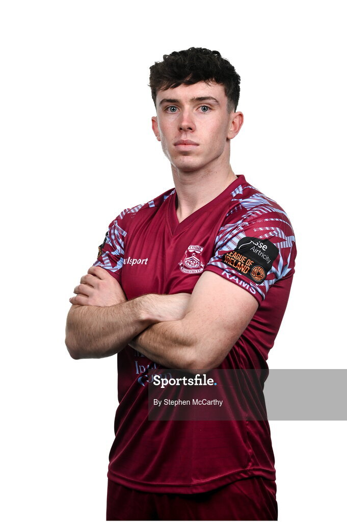 12 February 2024; James O’Leary poses for a portrait during a Cobh Ramblers FC squad portraits session at St Coleman's Park in Cobh, Cork. Photo by Stephen McCarthy/Sportsfile