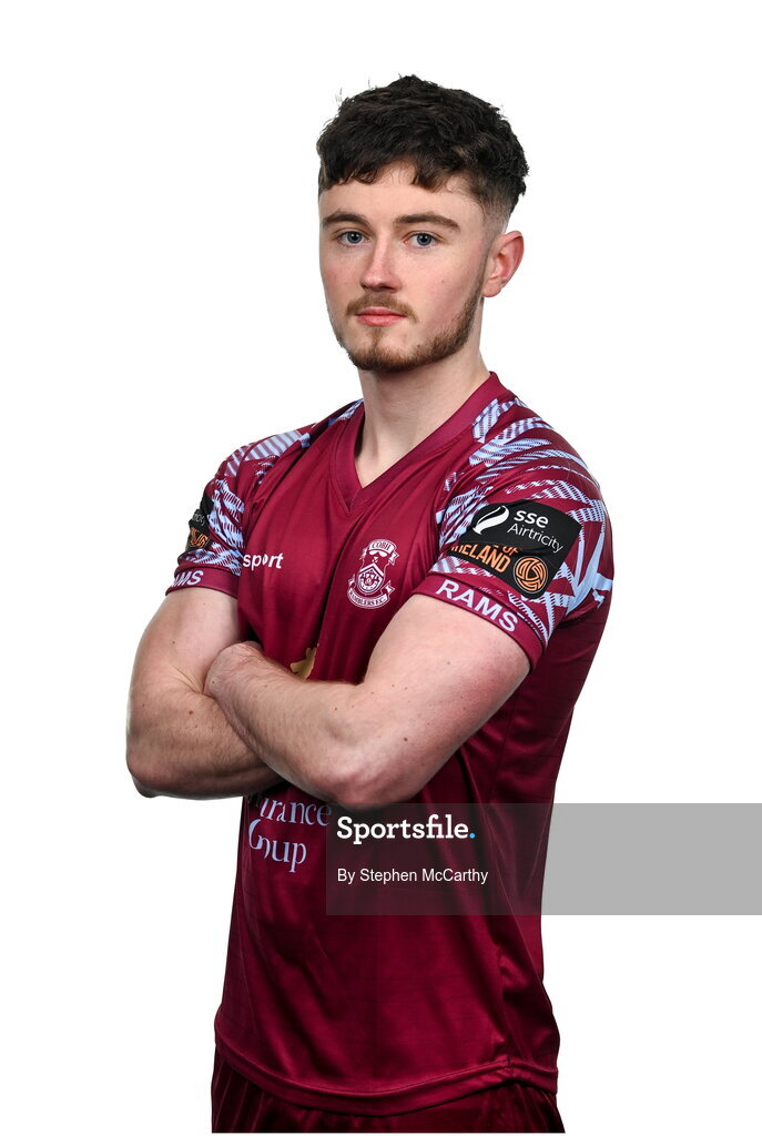 12 February 2024; Liam Kervick poses for a portrait during a Cobh Ramblers FC squad portraits session at St Coleman's Park in Cobh, Cork. Photo by Stephen McCarthy/Sportsfile