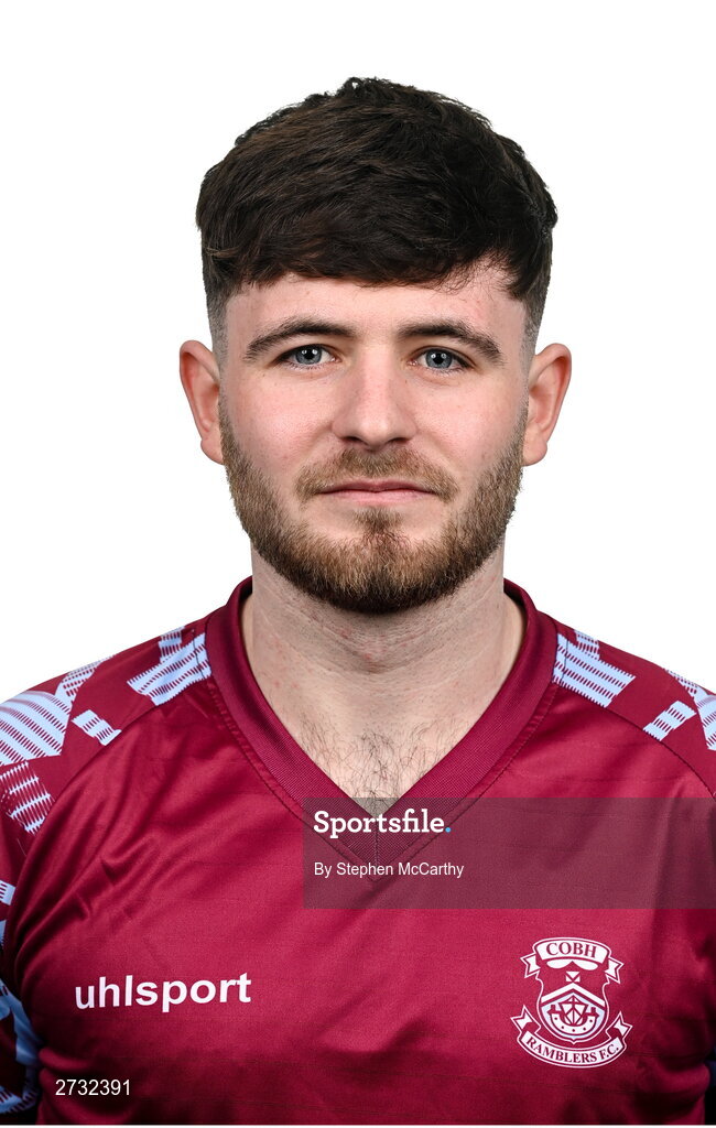 12 February 2024; Dale Holland poses for a portrait during a Cobh Ramblers FC squad portraits session at St Coleman's Park in Cobh, Cork. Photo by Stephen McCarthy/Sportsfile