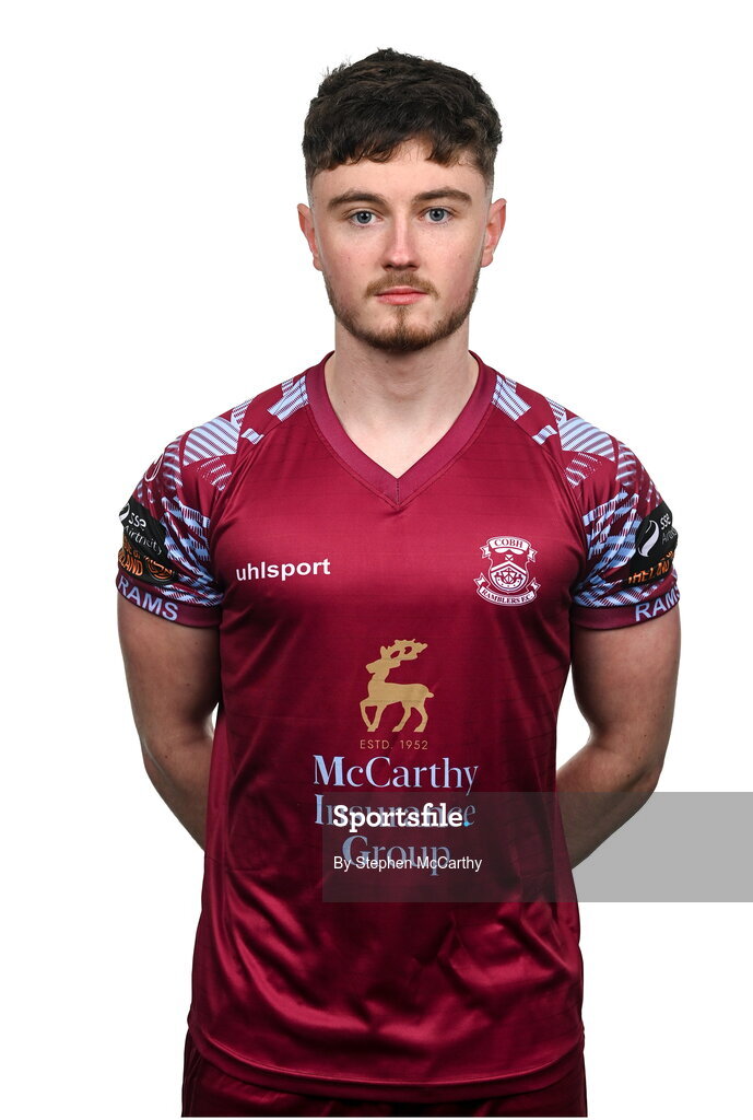 12 February 2024; Liam Kervick poses for a portrait during a Cobh Ramblers FC squad portraits session at St Coleman's Park in Cobh, Cork. Photo by Stephen McCarthy/Sportsfile