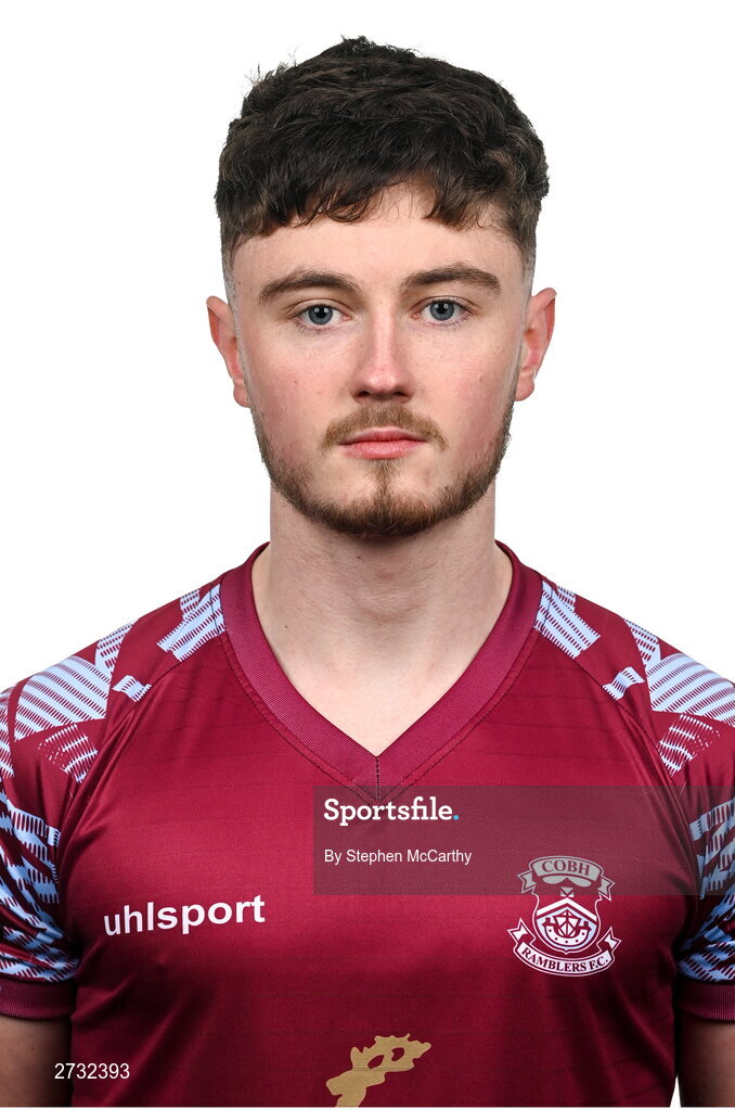 12 February 2024; Liam Kervick poses for a portrait during a Cobh Ramblers FC squad portraits session at St Coleman's Park in Cobh, Cork. Photo by Stephen McCarthy/Sportsfile