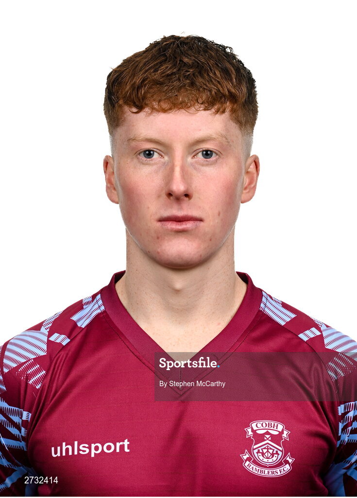 12 February 2024; Dan McKay poses for a portrait during a Cobh Ramblers FC squad portraits session at St Coleman's Park in Cobh, Cork. Photo by Stephen McCarthy/Sportsfile
